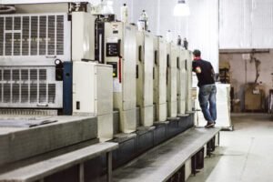 Alquilamos un galpón en los fondos de la casa de un amigo de unos 70 mts2, compramos una impresora modelo 1956, una troqueladora manual y una guillotina de los años 70, y comenzamos a producir bolsas para los primeros “corajudos” clientes que confiaron en nuestro proyecto.